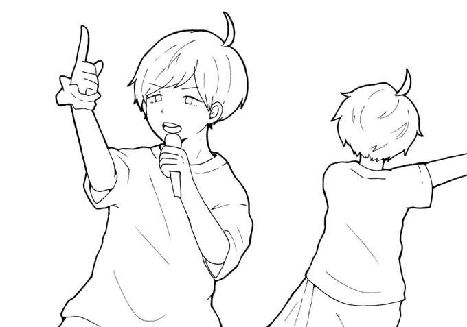 #皆さん線画と塗った後を見せてください こんな感じだ〜