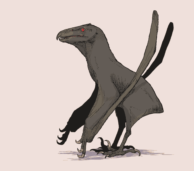 Illustration of a speculative "falcon pterosaur", sporting raptorial hand claws and pseudo-zygodactyl feet claws. This is my take on how a pterosaur would evolve if it were to mirror contemporary predatory birds. Not a real animal, an exercise in speculative evolution. #specevo