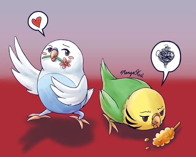 Since I've been away from facebook for a while, I've been catching up on #abudgieslife So I wanted to do a fanart~ Tony trying yet again to woo a less than pleased and hungry Chewy X3 @atisutori