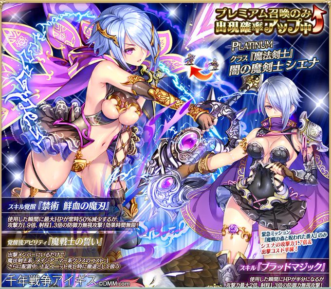 千年戦争アイギスにて「闇の魔剣士シエナ」を描かせて頂きました。