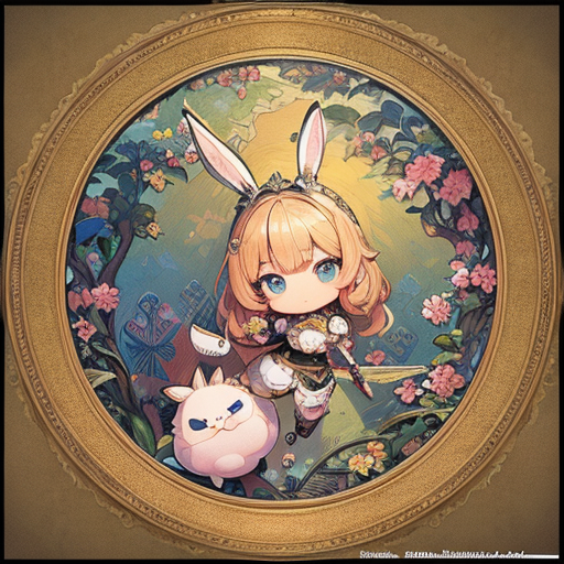 Art nouveau, relief of chibi rabbit in armor,