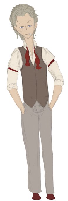 Newest OC. I think it's going to be Cerise Negligee. My grumpy femboy. His first iteration is a freelance mercenary with a passion for history.