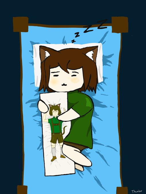 Did a lil sketch of chibi @catboyfisky sleeping with his Dakimakura #Vtuber #digitalart #AnimeArt #chibiart