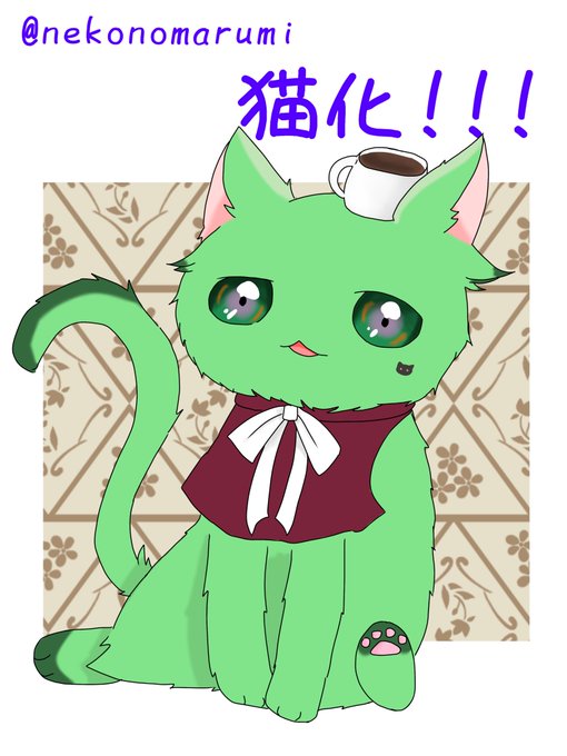 猫をこよなく愛してる方だと認識してるぞ!エプロンを首輪に、コーヒーカップを帽子にしたよー(*ˊᵕˋ*)