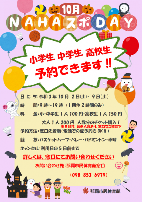 那覇市民体育館『NAHAスポDAY! 10月』受付開始のお知らせ | NPO法人那覇市体育協会 https://t.co/wS5oc4zg9P