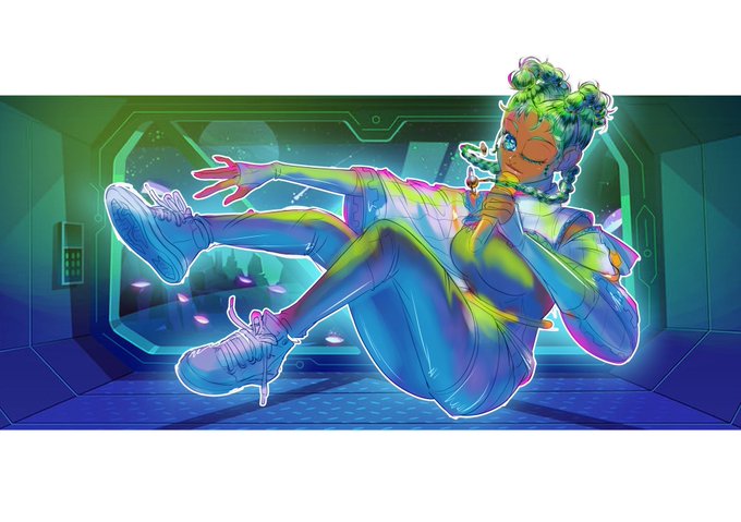 @SaerinuStorm I'm a lost space traveller from a different time, similar to how I feel irl, disconnected from the world and looking to start anew. I love urban street wear and sci-fi so I combined the two aesthetics to create my outifit. I also love cool colours, green being my favourite! 💚