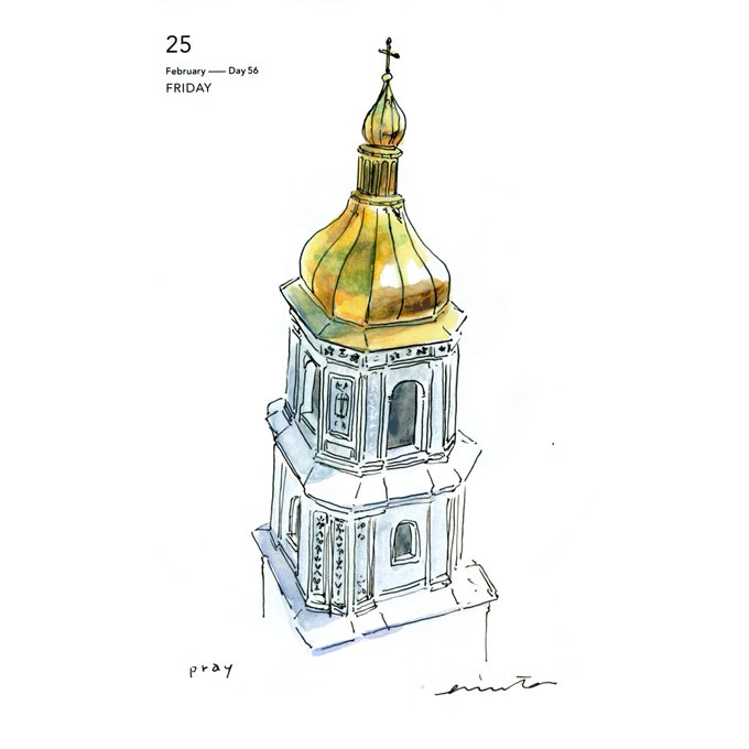 ウクライナ、キエフにある聖ソフィア大聖堂の鐘楼。ライブカメラから聞こえた鐘の音がとても綺麗で、どうかこの鐘の音がかき消されることなく、少しでも早く笑い声の側に帰れるようにと。
