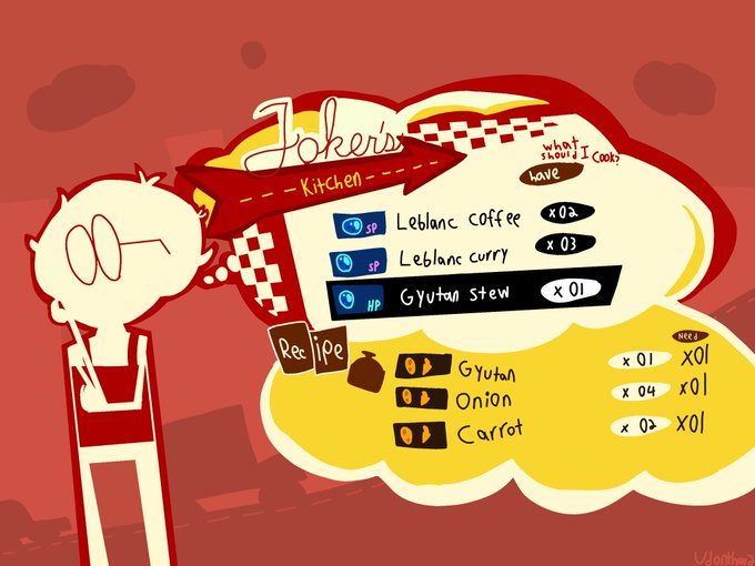 I've been playing P5S and so far, I love it, might dethrone Q2 and Ultimax as my favorite spinoff. I tried remaking the Joker's Kitchen menu in my style because I think it's quite stylish. So, I hope you enjoy it! #Strikeback #Persona5Strikers #Persona5 #Atlus
