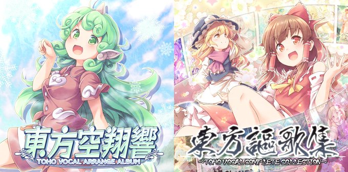 2日目・東シ77ab「あ~るの~と」様にて、新作『東方空翔響』『東方謳歌集』のジャケット等を描かせて頂いております。