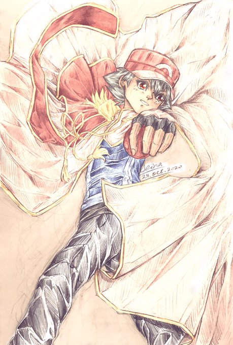 #皆さん線画と塗った後を見せてください 先月に描いたサトシくんで便乗…! 基本的には描き込みまではアナログかつモノクロなんですが、その後に上からデジタルで塗ってます