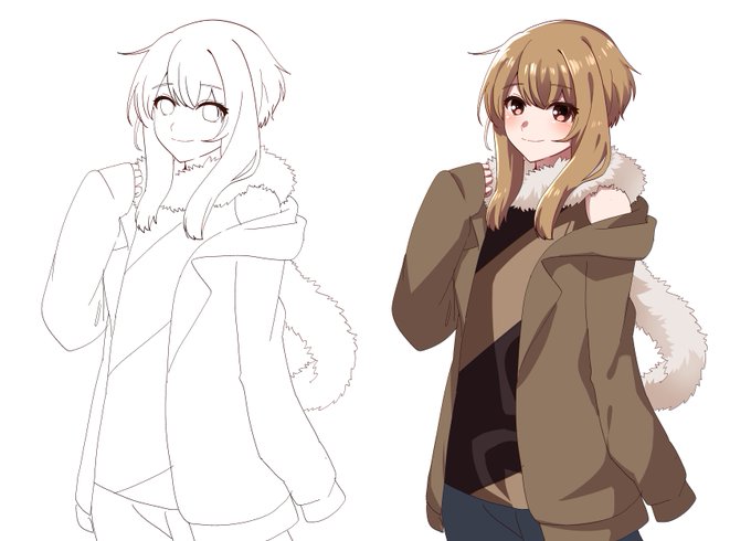 ふむふむ #皆さん線画と塗った後を見せてください