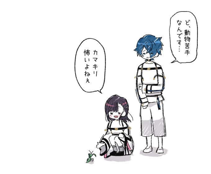 ハルカとユノ(ミルグラフ) カマキリの存在感がデカすぎて好きだったのでらくがき