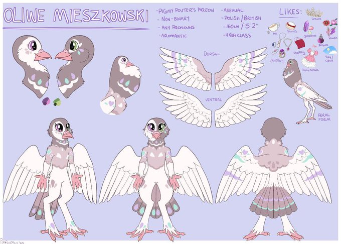 Art by @/pumpkinpaw ,@_Nanarui 🐦 I wanna turn my pigeon fursona into my goetiasona so I’m gonna be redesigning them and figuring out which Goetia Demon they will be related to. I am not sure if to keep the brown colour scheme or try to make it more hellish theme? #Helluvabossoc