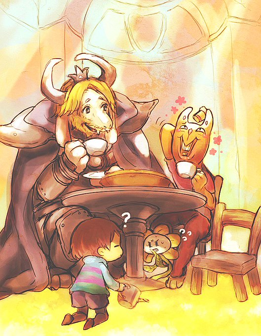 【Burgerpants】【throne room】【好きなイベント】仕事ぶりを褒めてくれる王様と失敗したパイも残さず食べてくれるバガパン君。お茶に誘ってもらえるイベント(会話)はもれなく大好きです。#undertale版深夜の真剣お絵描き60分一本勝負