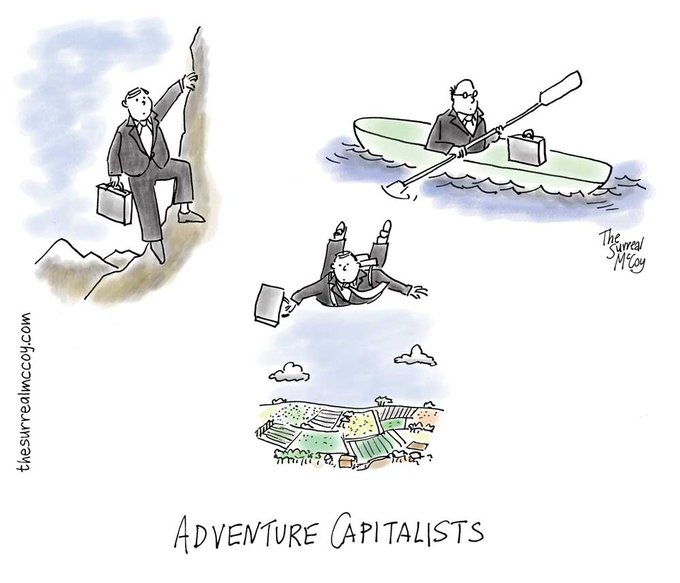 #TBT #cartoon from @prospect_uk Putting the fun back into #finance? #capitalism #capitalist #businessman #VentureCapital #venture #money #adventure #outdoors #activity #wilderness #canoe #river #parachute #mountain #climbing #TSMcCoy