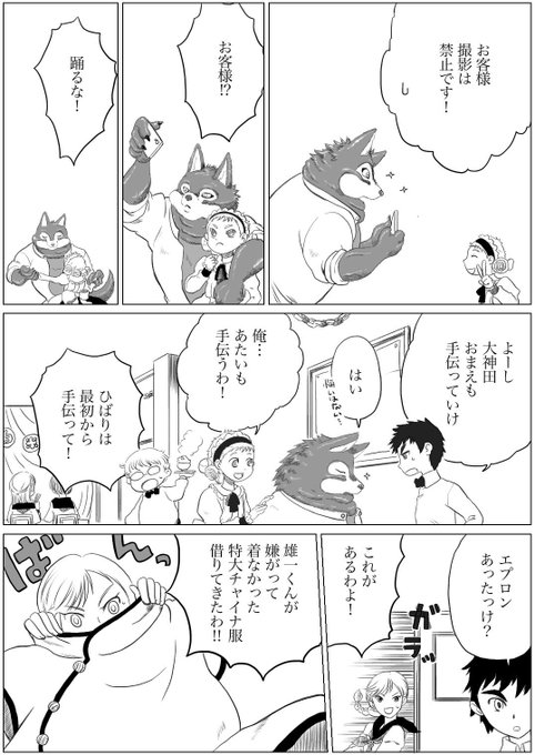 #獣人 #モフモフ 腐。モフモフ獣人をぎゅっと抱きしめる漫画。その8。文化祭アンケートありがとうございました「はちきれそうなチャイナ服」