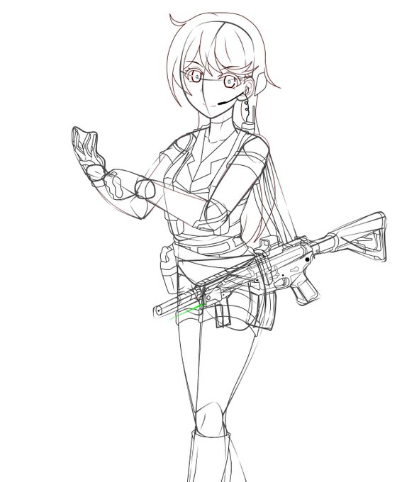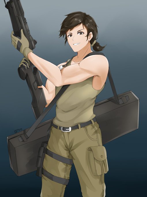 I'm used to draw her with military clothes.