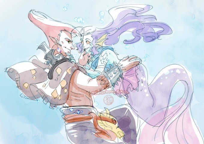 I've always wanted to make a #Mermay illustration but I'm too distracted or busy. I took the chance on making one today for my lunchbreak and it's the Siren/Demon AU for Adon and Hachii 😳💕