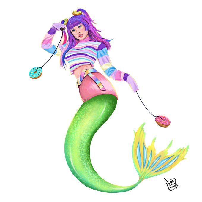 Mi sirena de donuts hipnóticos ¿con o sin fondo? Difícil decisión...🍩 #illustration #conceptart #digitaldrawing #illustrationart #Donuts #FelizLunes #characterdesign #ilustración inspirado en la modelo @Canninyart 🥰🌈