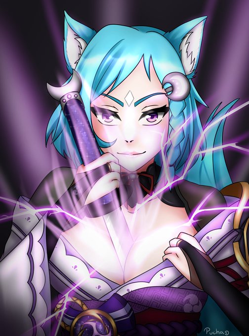Gdyby ktoś był ciekaw jak powstała ta abominacja to próbując wylosować Raiden na streamie powiedziałam że jeśli nie wypadnie mi teraz to narysuję siebie w jej stroju.... I no 🙃