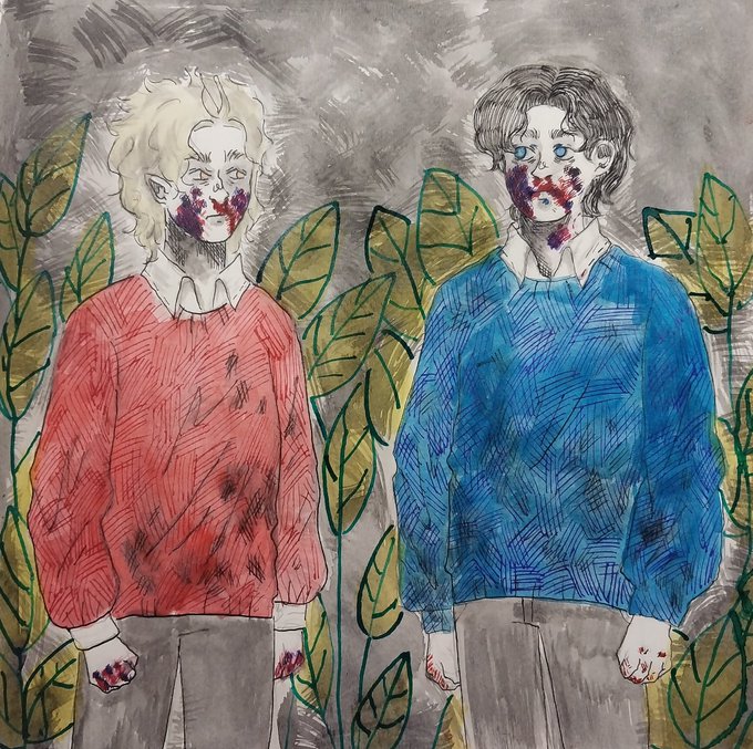 Дорогая @trnshdlabrador ! Благодарю за возможность нарисовать твоего ну просто апупеного оса 🍻💋.Это была вторая попытка, после перерыва, научиться передавать атмосферу. Надеюсь тебе понравиться это безумие. Заранее извиняюсь что немного переборщила и омрачила твоего перса ❤️🩹