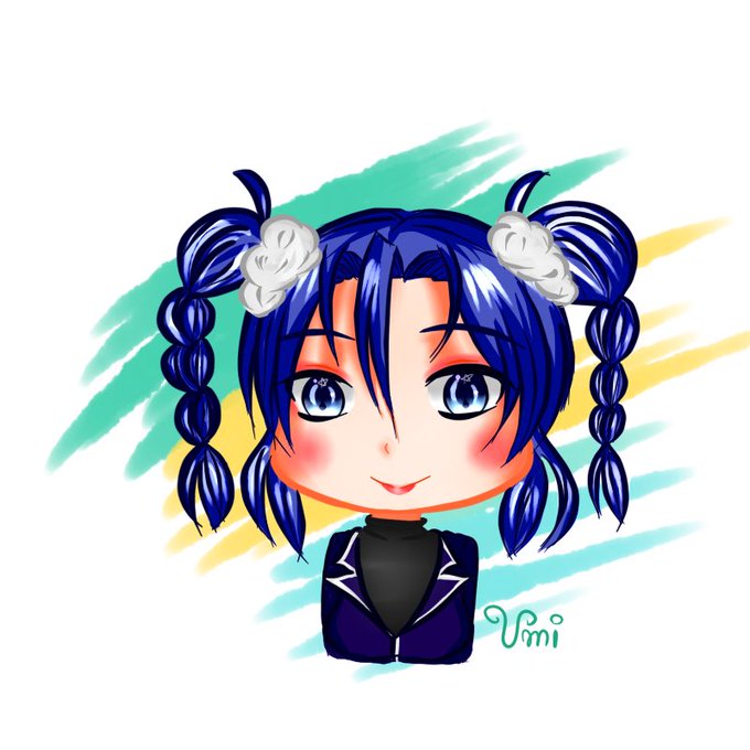 คือที่มาของสีผมอุมิ(ลูกทาคุเมงุของเรา) คือเราตั้งใจให้สีผมน้องเหมือนเมงุมิ แต่ตอนลงสีเรากะสีผมน้องเพี้ยนไปจากน้ำเงินของเมงุมิไปค่ะ มันเลยออกมาเป็นสีน้ำเงินแบบนี้ เราก็เลยไหนๆมันก็เพี้ยนไปแล้ว ก็เลยใช้สีน้ำเงินแบบนี้มาตลอดค่ะ ยกเว้นตอนลงสีน้ำหรือสีไม้น้อน สีผมน้อนจะเหมือนเมงุค่ะ