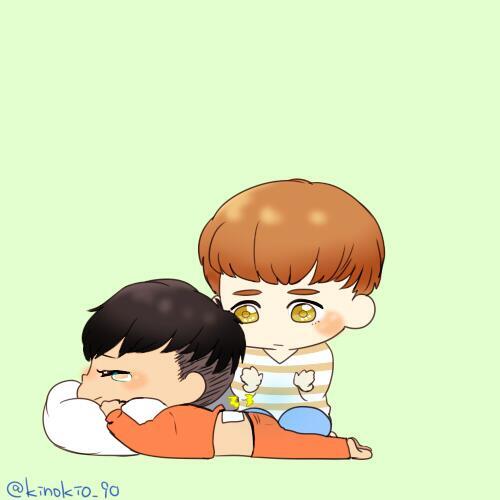 [Fanart] คยองซูนวดหลังให้เทา หลังน้องกลับจากกีฬาสีไอดอล ออมม่าน่ารักจัง ^^ [cr.kinokio_90]