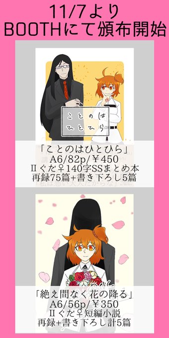 というわけで不備等なければ11/7にBOOTHでⅡぐだ♀小説同人誌二冊を頒布しますので何卒…何卒よろしくお願いいたします…6日くらいからTwitter告知野郎になります。多分。