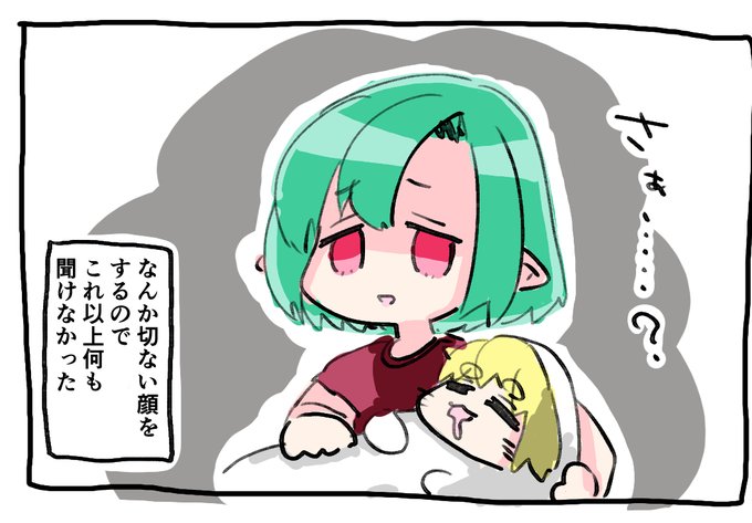 今年の絵(あざらし娘と緑髪の知らない人) 緑髪の人は「知らない人」が正式名称です。