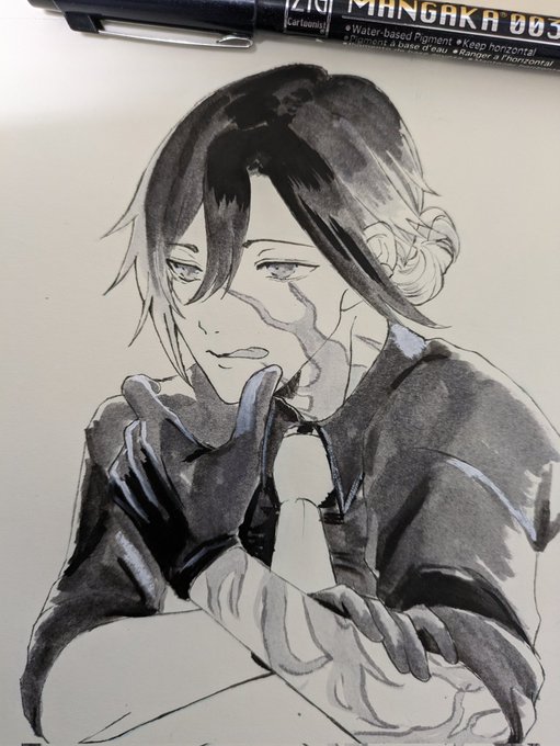 1枚目の小狐丸は完成作品もあり、着色自体はコピックを使用していますが、背景などはフォトショップ仕上げで厳密なアナログ絵とも申せませんので画稿の方を上げておきます。あと2枚目と3枚目の小夜くんの差が激しいのは仕様です( #あなたのアナログ刀剣乱舞イラストが見たい