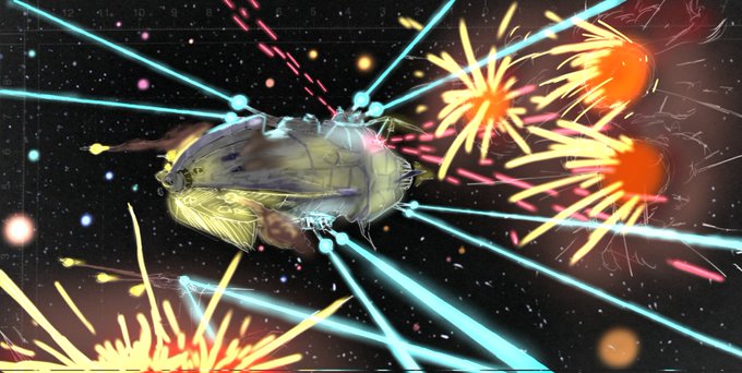 2199が公開された頃に描いた落書きでよろしければ。(メカは描けません)自分のHNの由来でもありますw 最後の1枚は某オンラインゲーとコラボした時に描いたものです。あれはびっくりしたなあ。 #あなたのヤマト見せて下さい