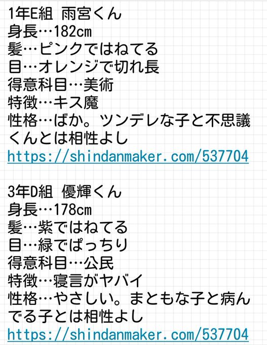 診断メーカーの創作高校生、幸兎と晴灯!です!(名前は垢名から)