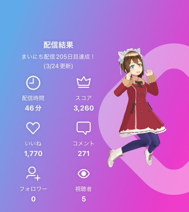 朝枠 6:10~7:10(IRIAM)