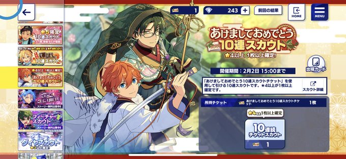 ひなたくんフィーチャー欲しいのに、大吉スカウトでダイヤと☆5運を使いすぎてる…( ; ; )来ておくれ〜、来ないよ😭