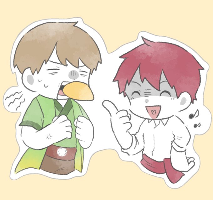 楽しそ〜にちょっかいをかけるともさんと、いつも良いリアクションをするよぴさんの図 #赤pic #あトリえ