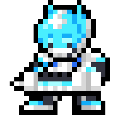 「いいおなかの日?ちゃんと服着て寝ろ。」とか言ってそうな薬剤戦師オーガマン(@ohga_man)のファンアート的な何かです。デザインかっこよ…(久々のドット絵練習🎨)