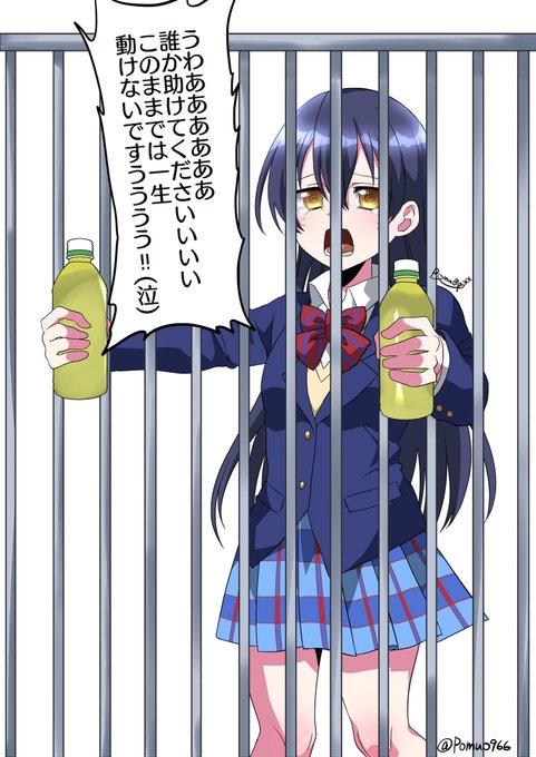 これは海外のいたずら系の動画で見た柵の向こう側に居る人にペットボトル持たせて身動きできなくするやつを海未ちゃんにしてやりたいという絵です #ラブライブ #園田海未