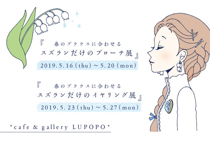 『春のブラウスに合わせる、スズランだけのブローチ展、イヤリング展』
