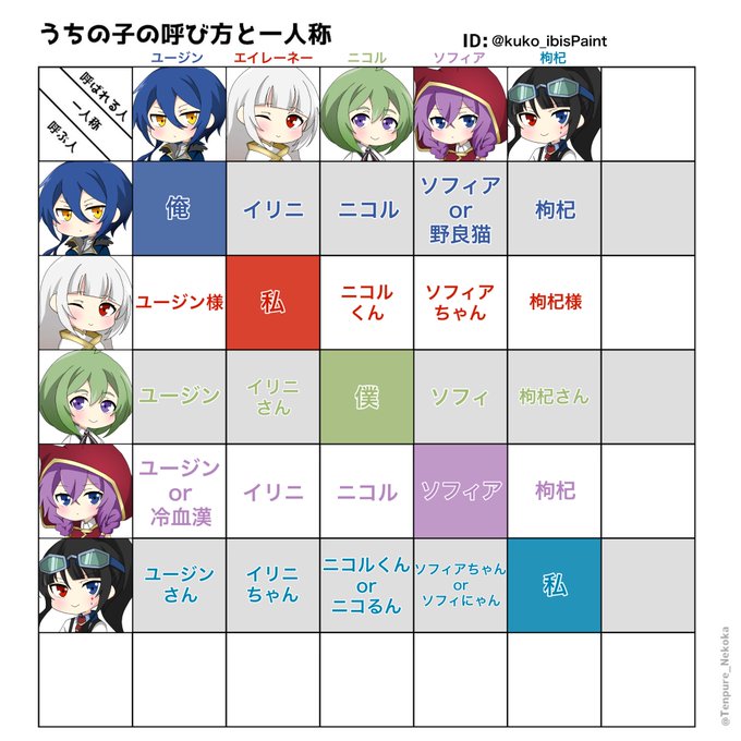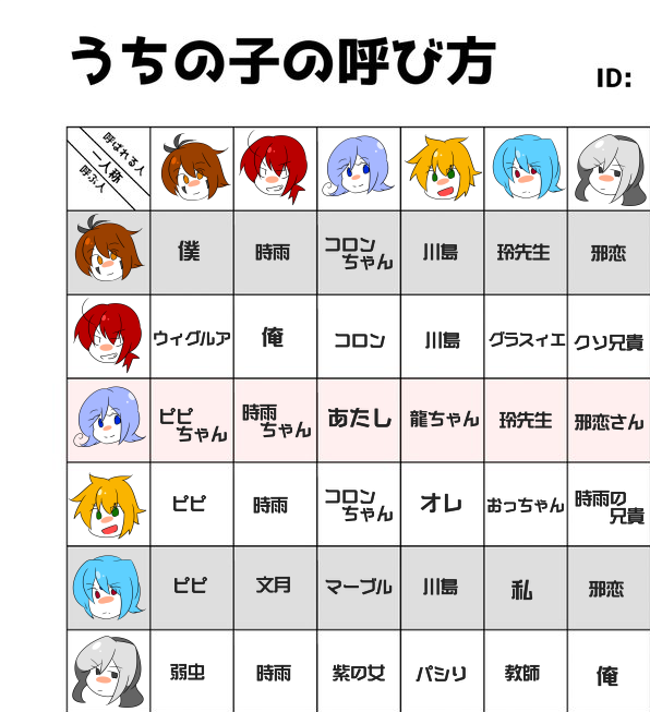 >RT 素敵なテンプレお借りしました! ほぼ自分用メモ。ファイアとエンジェル’ズと、自作テンプレのアクロマチック・バディ(以前も上げましたが…) #うちの子の呼び方と一人称