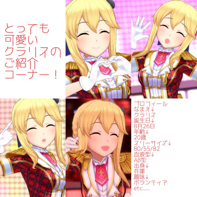 担当紹介と総選挙のアピールも兼ねて個人的に思ったクラリスの魅力を纏めてみました。初めて作ったので至らない点はあるかと思いますが。(シンプル過ぎ)どうぞクラリスを是非、シンデレラガールに!