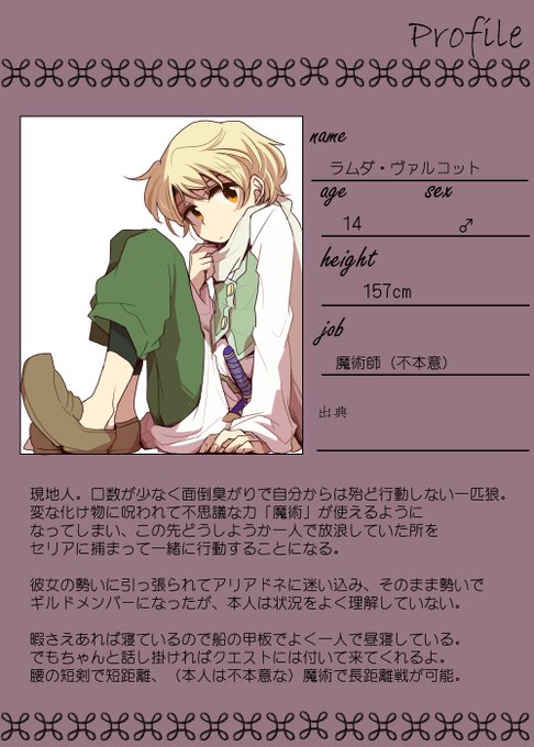 周りがやってるので自分も放り込んでみました。青い方のキャラシは創作に落とし込む前の企画用ですが、大本変わってないです。
