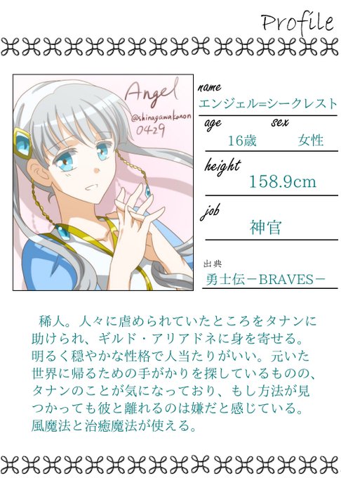 キャラシ改めてうちの主人公タナンと、追加でヒロインのエンジェルも参加します!よろしくお願いします〜( ´ ▽ ` )ノ