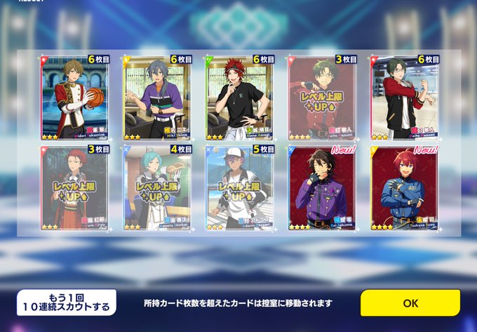 ユニット別スカウトは友達と通話しながら「レオ欲しいな〜☆5いないから欲しいな〜」って言ってたら出ました…うれぴょ…