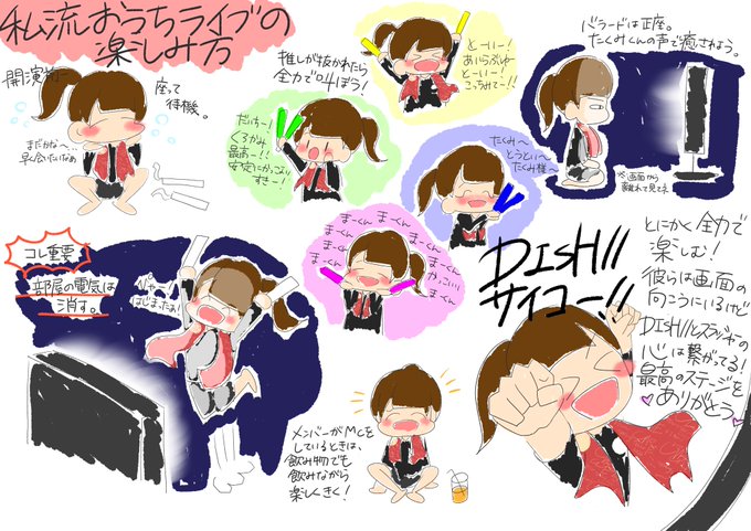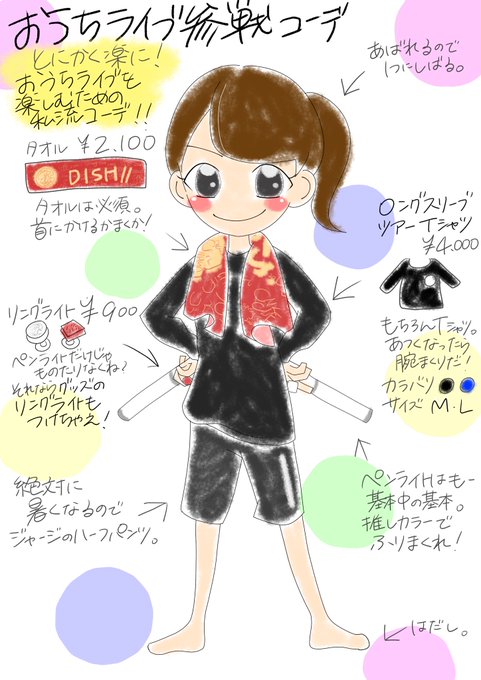 私流おうちライブ参戦コーデと、ライブの楽しみ方をまとめてイラストにしてみました😊