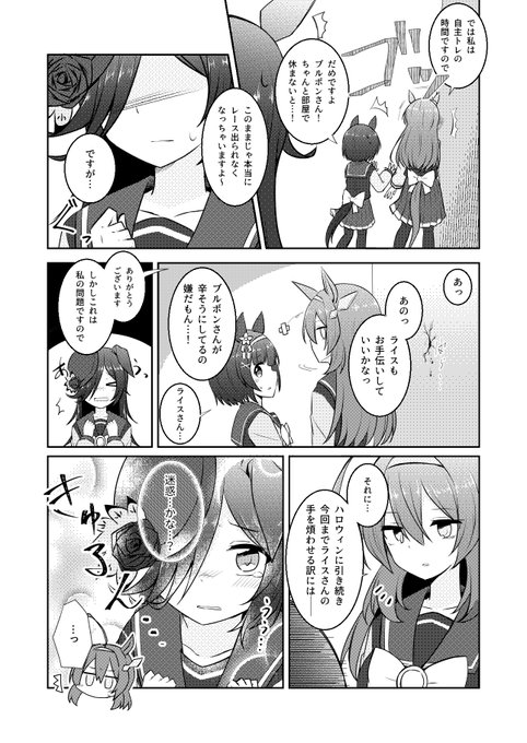 ひょんなことから夜ふかし気味になってしまったブルボンを助けるためにライスが頑張るお話です。