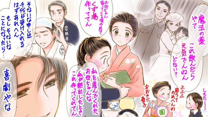 #おちょやん #おちょやん絵 #おちょ絵 第112話ー①💕 熊田さんからの申し出、鶴亀新喜劇の舞台に立つという事を考え続ける千代。春子は元気がなさそうに見える千代のためにくず湯を作る。(失敗しちゃったけど😊) 春子の優しい思いに千代は、ついに道頓堀に戻る…