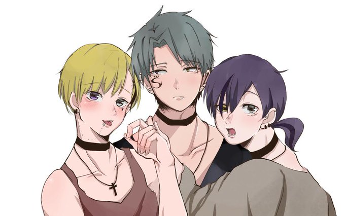 おまブリ一周年ありがとうございます!一年前の今日に魅吊威のキャラデザをした水嶋です。彼らが生まれてもう一年も経つのが早すぎる!おめでとう!!これからもゆるゆると描けて行きたいなと思います、よろしくお願い致します~! #おまブリ #おまブリ1周年