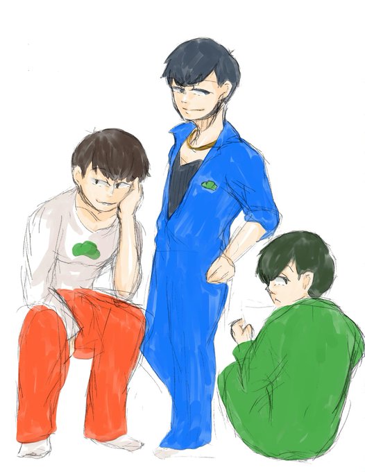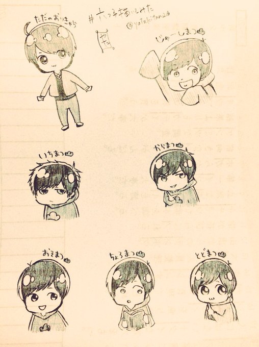 #お前の絵柄で松野家の六つ子を描いてみろ こちら(https://t.co/IstvyKYvBy)のテンプレお借りしました。途中アニメ塗り風にチャレンジしようとして結局自分塗りになった