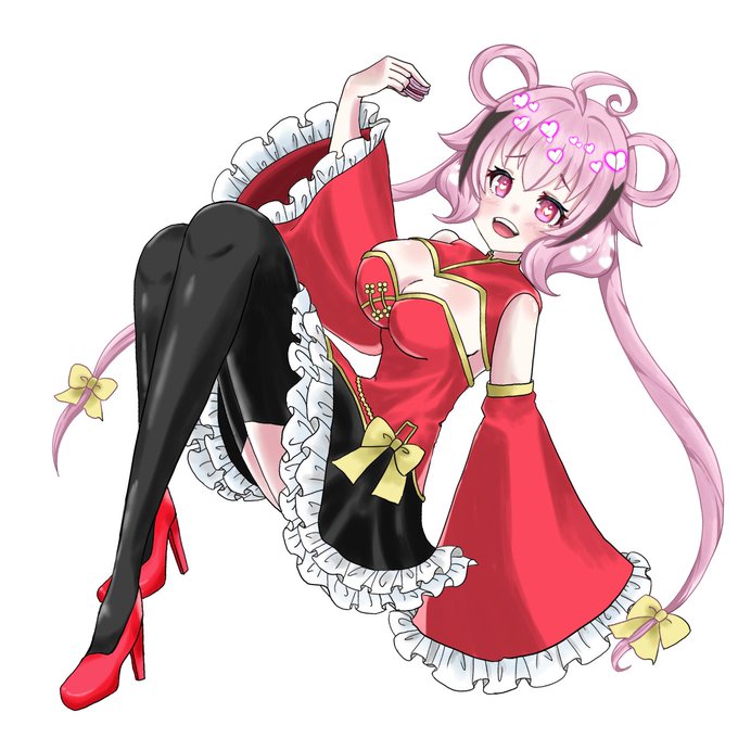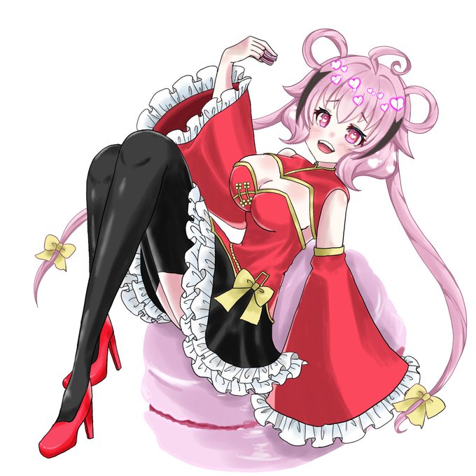 葵様(@ A0i___v)のファンアートを描かせていただきました!ハートが沢山のキュートな見た目に対してチラ見する絶対領域にドキドキしながら描かせていただきました!