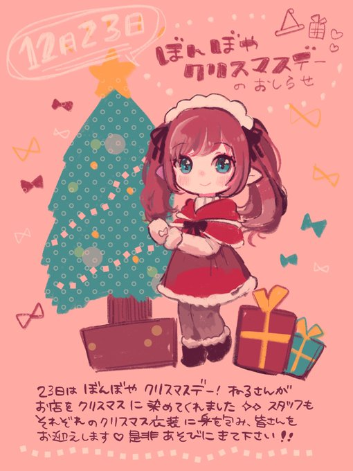 23日はぼんぼやクリスマスデー!🥳のおしらせ✨クリスマス仕様の内装・お洋服でお迎えします🎁🎅💕是非お手持ちのクリスマス衣装で一緒に冒険や記念撮影をしましょう📷☀️(にがおえ屋・お弁当販売などは通常通り営業します!+でのわさんの特別イベントもあるよ!)
